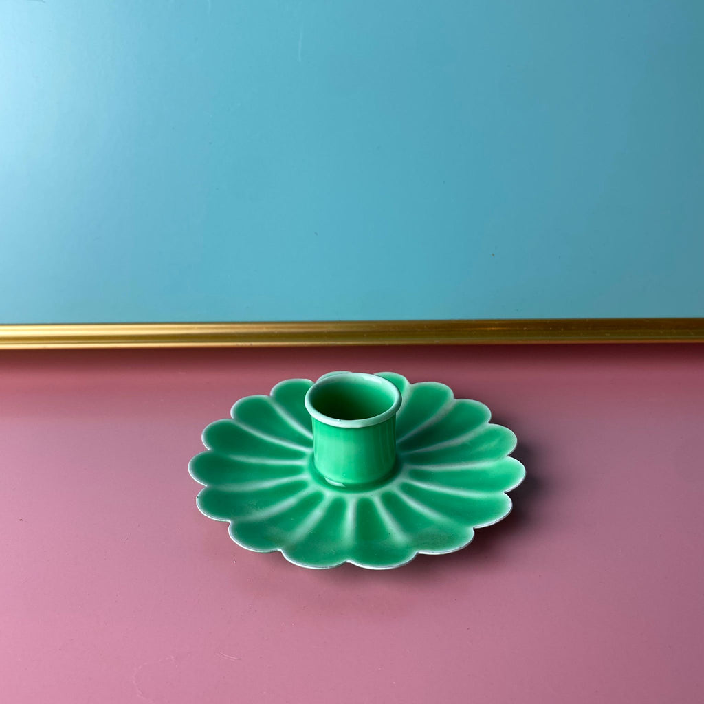 Gorgeous green enamel flower candle holder, perfect to brighten up any dinner table!